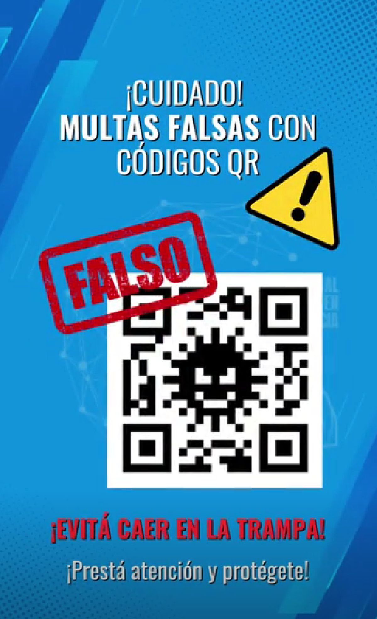 El Ministerio se encargó de emitir un comunicado de advertencia para los ciudadanos de la provincia: "Se detectó en la ciudad de Salta, la existencia de casos de supuestas multas de tránsito dejadas en los parabrisas de automóviles estacionados en la vía pública, donde el supuesto infractor debe escanear un código QR para visualizarla, lo que constituiría una maniobra fraudulenta. Aún no se radicaron denuncias al respecto".