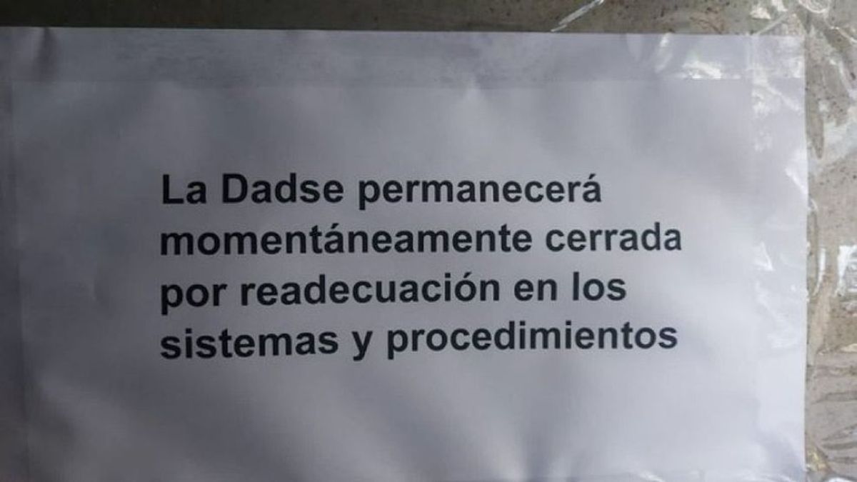 En las puertas de la institución de cobertura médica se encuentra un cartel con una leyenda que indica: "Permanecerá cerrada temporalmente por readecuación en los sistemas y procedimientos".