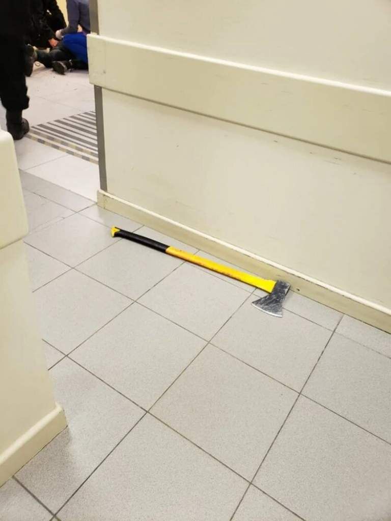 Las personas que se encontraban en el lugar en ese momento corrieron para salvar sus vidas cuando el hombre comenzó a destrozar con su hacha todo lo que estaba a su paso.