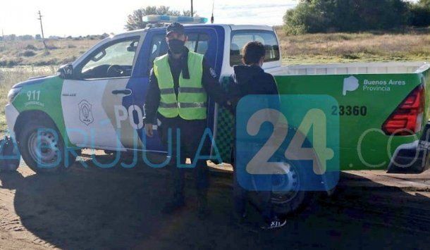 Precisamente, se lo ve a al joven de espaldas junto a un efectivo con chaleco, luego de que los oficiales lo detuvieran para labrarle un acta por incumplir el aislamiento social obligatoria en el trayecto de la ciudad de Pedro Luro a Bahía Blanca. Cabe apuntar que está parado al lado de la camioneta de la fuerza que fue secuestrada para realizar peritajes en el marco de la causa.