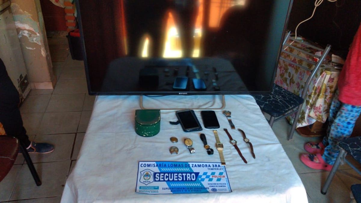 Los tres allanamientos fueron en la localidad de Llavallol. En el primer domicilio, arrestaron a un hombre de 41 años que tenía en su poder un Smart TV de 32 pulgadas, dos celulares Samsung y ocho relojes de diversas marcas, que habían sido robadas durante la entradera en Temperley.