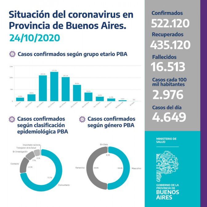 Por último, cabe señalar que en 25 distritos del interior de Buenos Aires con riesgo epidemiológico bajo o nulo por coronavirus comenzarán las clases presenciales y ya están dispuestas 338 escuelas. En tanto, se sumarán desde el 10 de noviembre próximo unas 357 escuelas más.