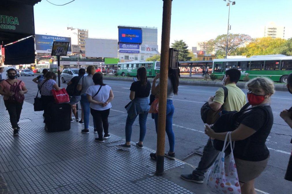 Por la protesta en las vías del Tren Roca, hubo largas filas de pasajeros esperando colectivos.