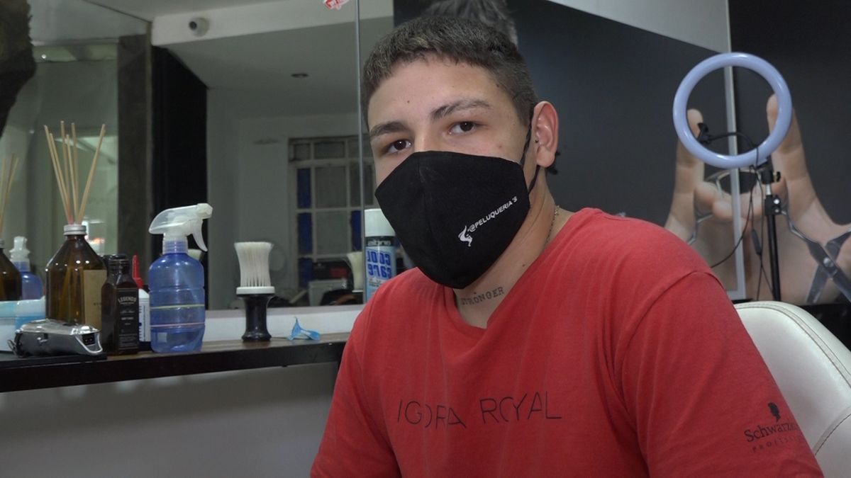 “Arranqué a los 17 años a trabajar como peluquero y con el tiempo me fui formando. Los clientes son la parte más buena de todo esto. Generalmente se van contentos y tiran buena onda. Eso es lo mejor de la profesión. A veces no me gusta el desorden que genera cortar el pelo, porque hay que estar constantemente barriendo. También un poco cansa estar todo el día trabajando. Nosotros damos turnos cada media hora. A los trabajadores les quería decir que disfruten del trabajo que tengan sea cual fuere”.