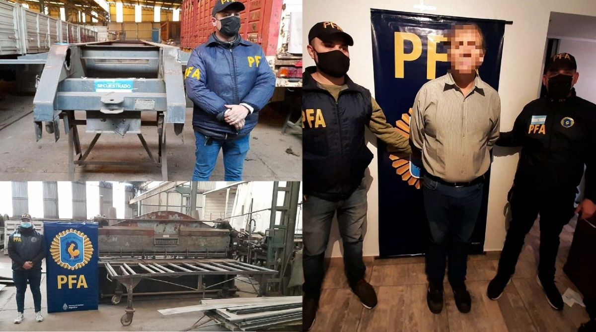 En los allanamientos se secuestraron cinco semirremolques que se encontraban en pleno proceso para ser adulterados y ser registrados, un camión blindado que presentaba las mismas características de encontrarse en proceso de desarme, 12 automóviles los cuales no poseían documentación que permita acreditar su propiedad, diversas autopartes de origen ilegal, varias chapas patentes que se encontraban escondidas correspondientes a los semirremolques denunciados como robados, diversas herramientas de corte y soldadura para adulterar los semirremolques y vehículos, un motor marca BMW y demás elementos de interés para la causa.