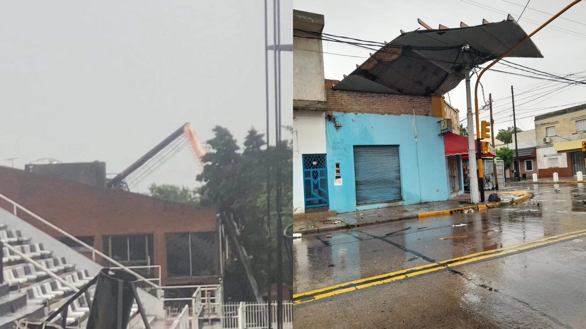Mientras que en las zonas de Lanús y Avellaneda se reportaron la caída de los postes de iluminación del estadio de El Porvenir en Gerli y en Avellaneda también hubo reporte de techos volados como el de este local en la localidad de Wilde.