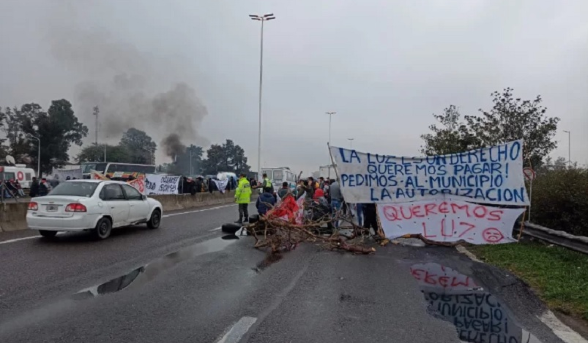 El grupo que está apostado sobre la vía que conecta la Ciudad de Buenos Aires y el Aeropuerto de Ezeiza está integrado por vecinos de un asentamiento cercano que reclama luz y urbanización al Municipio -que según indicaron los manifestantes- pone trabas ya que en el lugar hay un cementerio de un pueblo originario.
