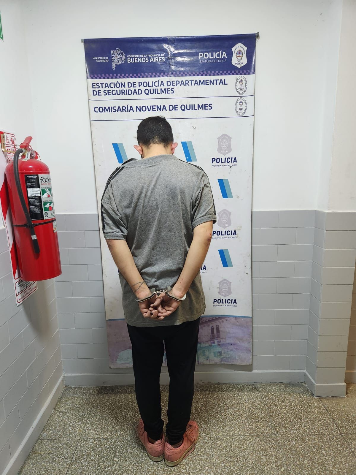 Luego de haber sido advertida por las imágenes, la Policía comenzó a buscar al delincuente, que fue detenido a las pocas cuadras, aún en compañía de su hijo, que observó como su padre era esposado boca abajo en medio de la vía pública.