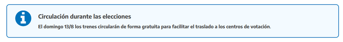 Este domingo 13 de agosto son las elecciones Primarias Abiertas Simultáneas y Obligatorias (PASO) por lo que miles de ciudadanos se movilizarán para ejercer su derecho y obligación como ciudadanos. Por este motivo, desde Trenes Argentinos brindaron información sobre cómo será el servicio del Tren Roca durante toda la jornada.