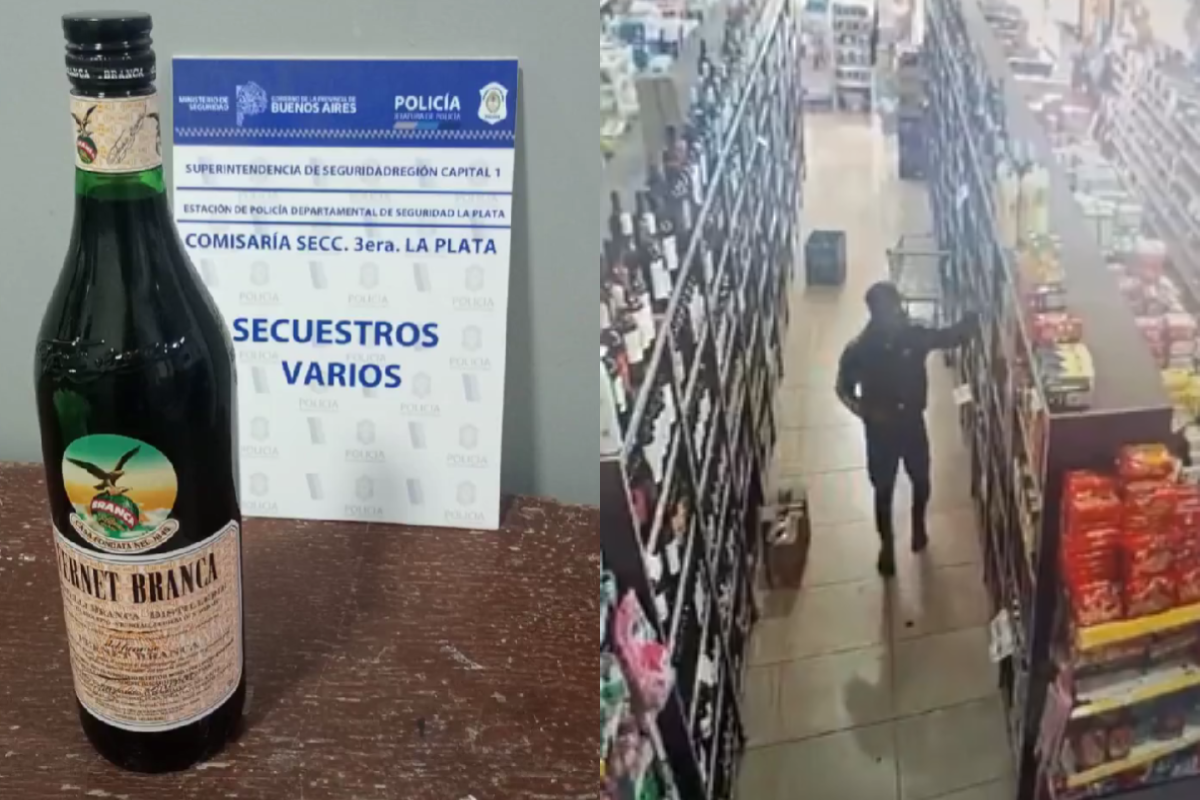 El incidente ocurrió en los últimos días en el supermercado ubicado en la calle 137, entre 58 y 59, donde las cámaras de seguridad registraron al ex efectivo policial de la Comisaría N°7 de Quilmes recogiendo una botella e intentando escapar con ella. También había llegado a agarrar otra bebida, aunque se dio cuenta de que la mujer lo había visto y dejó el último producto en un carrito de compras. El producto fue incautado por la Comisaría Seccional N°3 de La Plata.