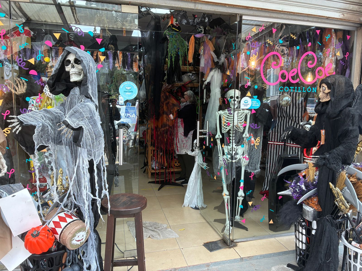 Los precios en este cotillón son variados: vinchas desde 900 pesos, caretas desde 1.500 pesos y muñecos con movimiento desde 10.000 pesos, con descuentos en efectivo. Según Liz, la fecha se celebra más por las ventas que por la tradición, aunque se suma a la costumbre de decorar y salir a pedir caramelos.