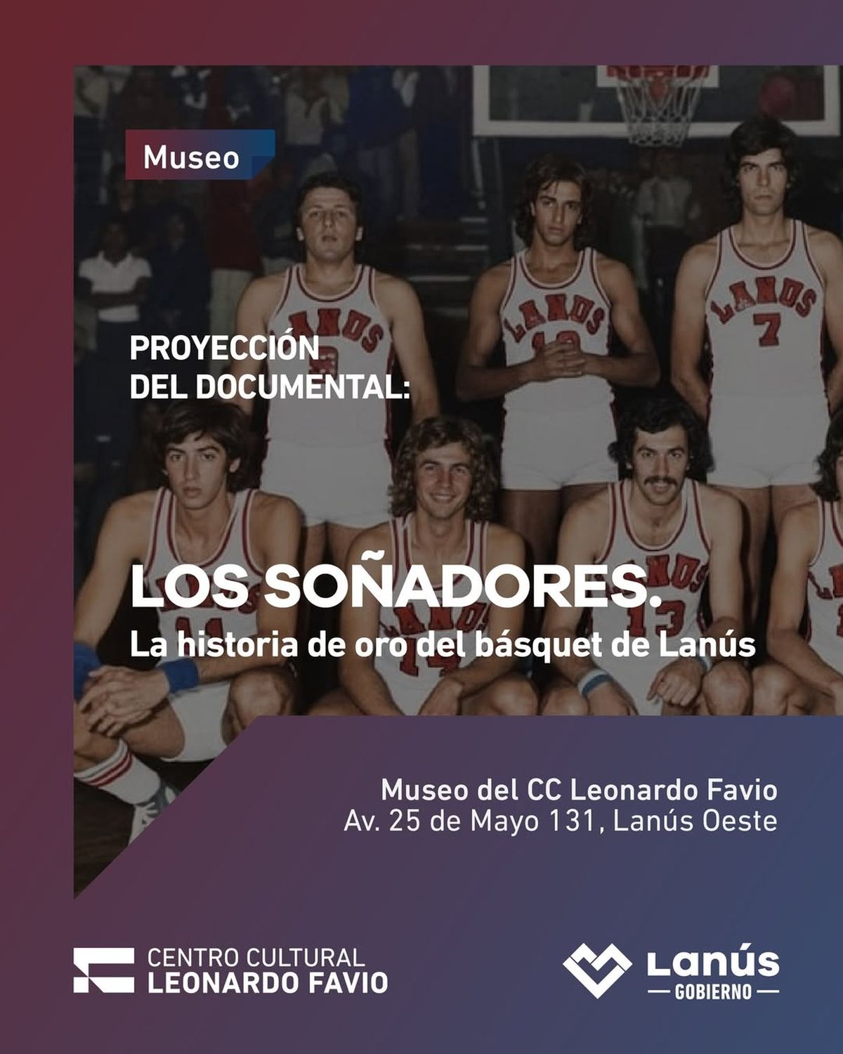 El sábado 11 de octubre a las 18 hs, el Museo y Centro Cultural Leonardo Favio será escenario de la proyección del documental “Los soñadores: la historia de oro del básquet de Lanús”, una producción que repasa los logros históricos del club y las figuras que marcaron una época en el deporte local.