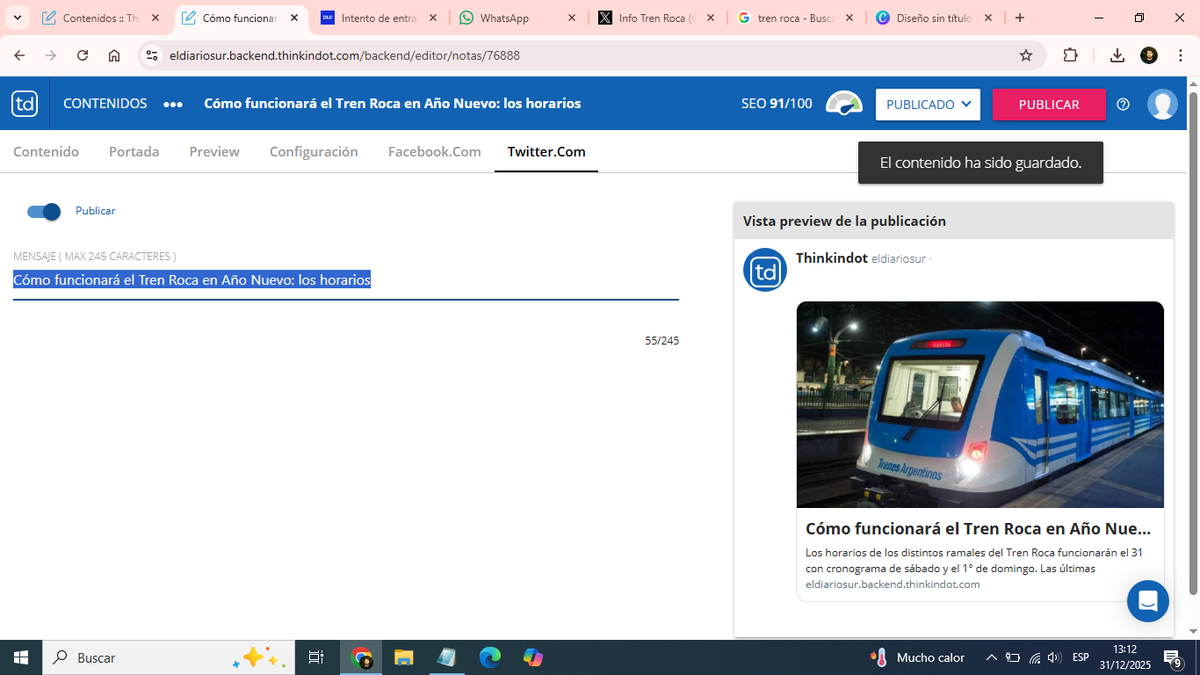La empresa Trenes Argentinos difundió los horarios de los distintos ramales del Tren Roca para este miércoles 31 de diciembre y jueves 1° de enero. En la primera de las fechas, las formaciones circularán con cronograma de sábado, en tanto el 1° lo harán con horarios de días domingo.