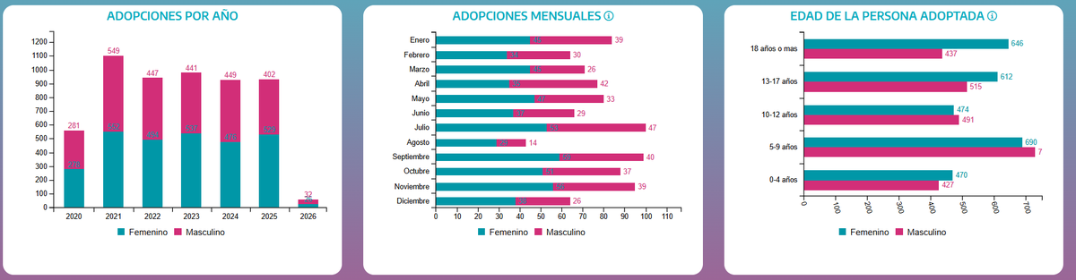 Durante 2025, la provincia de Buenos Aires registró 931 adopciones formalizadas, de acuerdo con los datos oficiales. Del total, 529 correspondieron a personas de sexo femenino y 402 a masculino. La información también muestra que una parte relevante de las adopciones involucró a niños, niñas y adolescentes mayores de 10 años, un grupo que históricamente presenta mayores dificultades para acceder a una familia adoptiva.