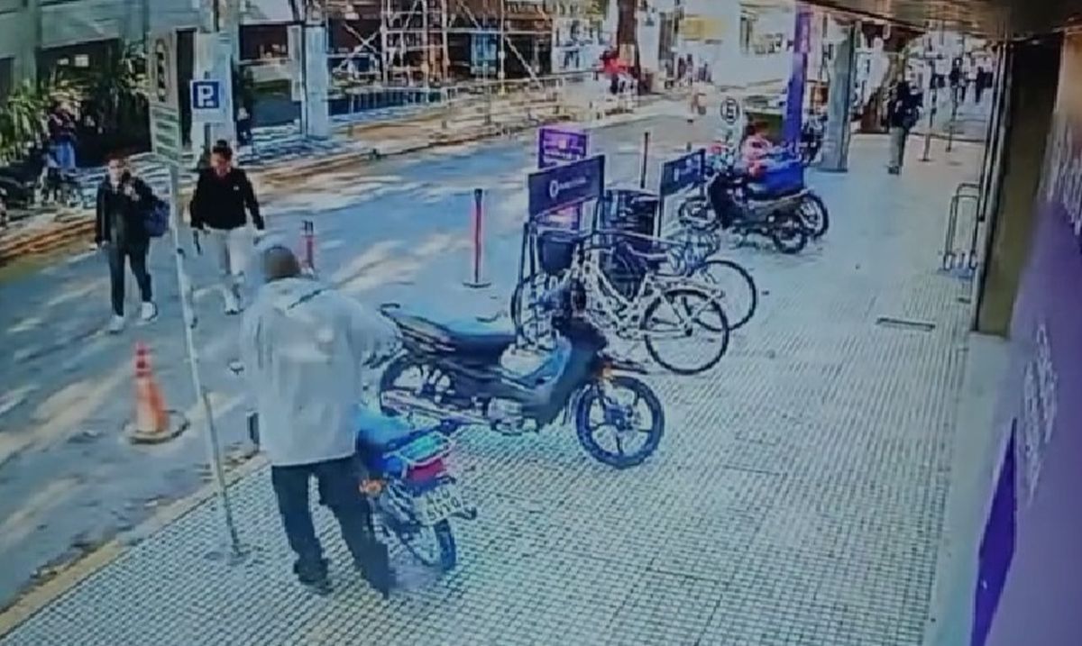 El robo ocurrió de día y el ladrón logró llevarse el vehículo en pocos segundos: según se ve en el registro de las cámaras de seguridad, se acercó a la moto estacionada en la puerta del local, rompió la traba de seguridad y escapó.