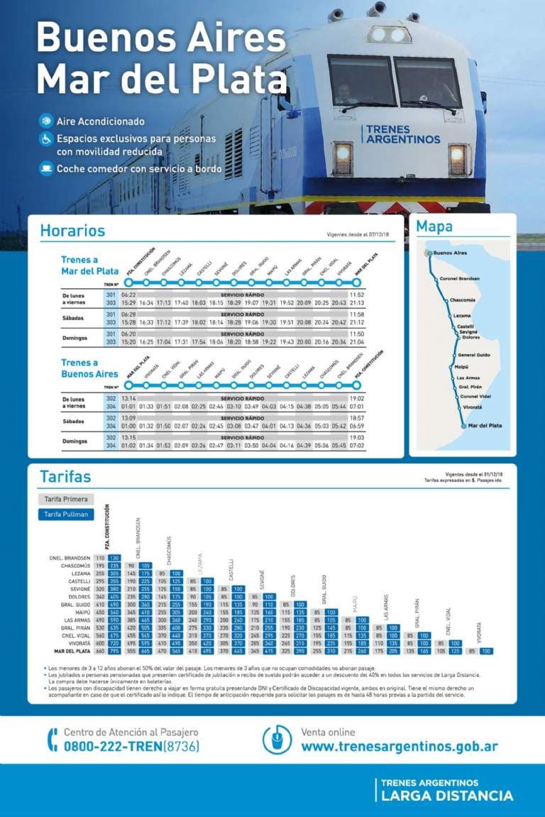 En busca de mejorar la conexión entre la ciudad de Buenos Aires y la costa bonaerense, Trenes Argentinos mejoró la frecuencia de trenes a Mar del Plata con dos servicios por día. Además, hay importantes descuentos para jubilados, menores y quienes compren pasajes por internet.