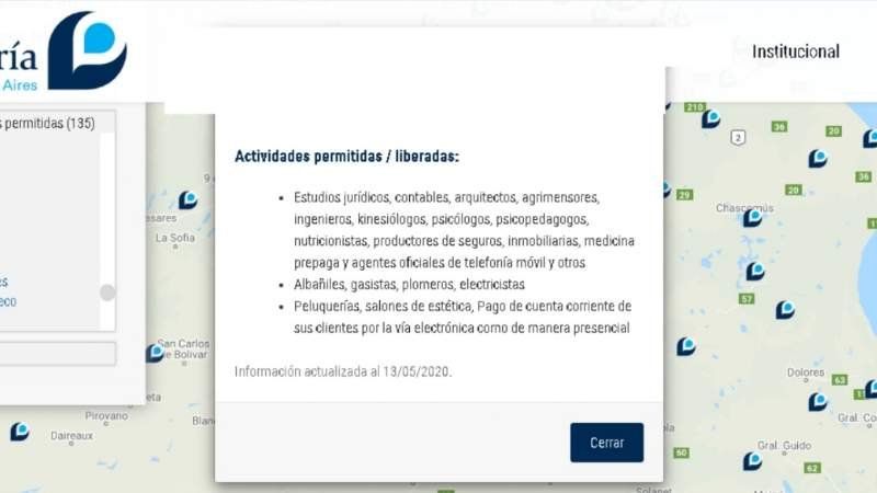 La Defensoría del Pueblo de la Provincia de Buenos Aires elaboró un mapa interactivo que se actualiza diariamente la información sobre las actividades habilitadas en cada uno de los municipios.