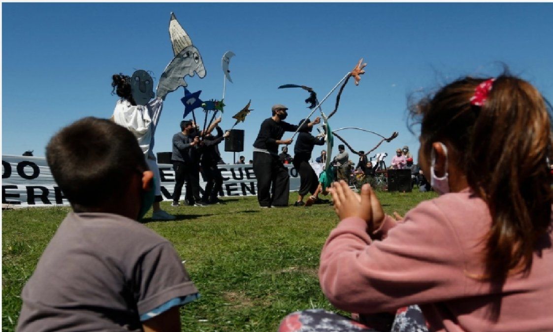 Un grupo de artistas presentó este lunes una obra de títeres en la toma de Guernica. Se trata de una pieza que escribió el actor Norman Briski sobre el tema. Organizaciones sociales de izquierda que llaman a “resistir” el desalojo ordenado por la Justicia organizaron el evento y montaron un escenario en el lugar.