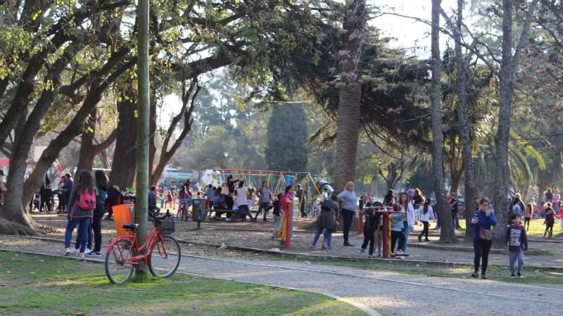 Una temperatura que superó los 20 grados y cortes de luz en gran parte del distrito. Esos dos factores, más el receso invernal, influyeron para que los parques y plazas de San Vicente y Alejandro Korn estallaran durante la tarde del miércoles. Para la jornada de este jueves, se esperan escenas similares.
