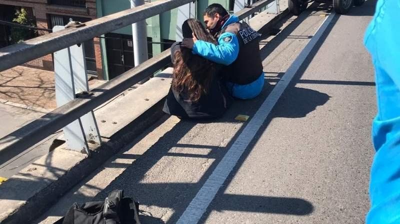 Fue en una autopista en Capital. Abrazaron a la joven y le hablaron como amigos para persuadirla. Fue un momento emotivo.