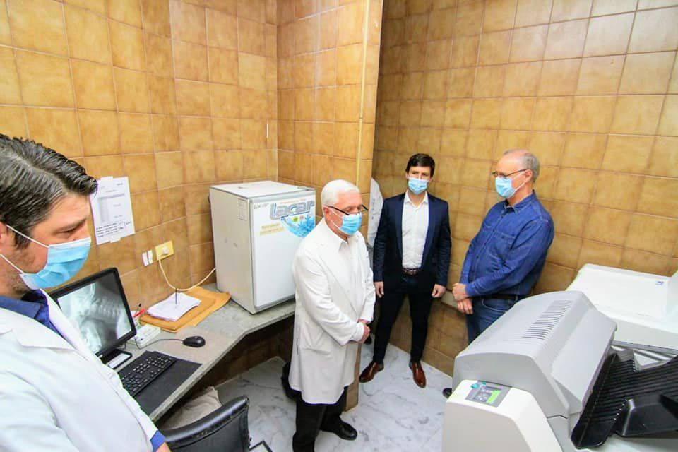 Julio Goya con Mantegazza y Daniel Gollan en el Hospital de San Vicente.