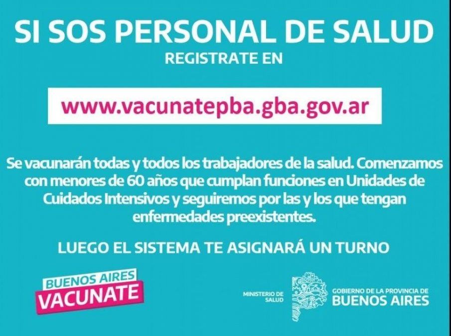 Por su parte, el intendente de San Vicente, Nicolás Mantegazza, invitó este sábado a la población a anotarse en el "Plan provincial público, gratuito y optativo contra el Covid-19". "Si pertenecés a los 5 grupos prioritarios de vacunación, registrate en la nueva página Buenos Aires Vacunate", indicó el jefe comunal.
