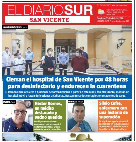 El momento más angustiante del año para San Vicente se vivió en la tercera semana del mes de abril. Un brote de contagios de coronavirus originado en el Instituo Médico de Brandsen se dispersó entre el personal del Hospital Ramón Carrillo y generó más de 20 contagios. Gran parte de los médicos debieron quedar en cuarentena. La Provincia intervino y debió cerrar el centro de salud para desinfectarlo y trajo un “hospital móvil” para atender urgencias. Ese brote se cobró la vida de tres trabajadores de la salud. El intendente Mantegazza y el viceministro de Salud bonaerense, Nicolás Kreplak, dieron el 23 de abril una conferencia de prensa en la que anunciaron las medidas y también un endurecimiento de la cuarentena a nivel local.