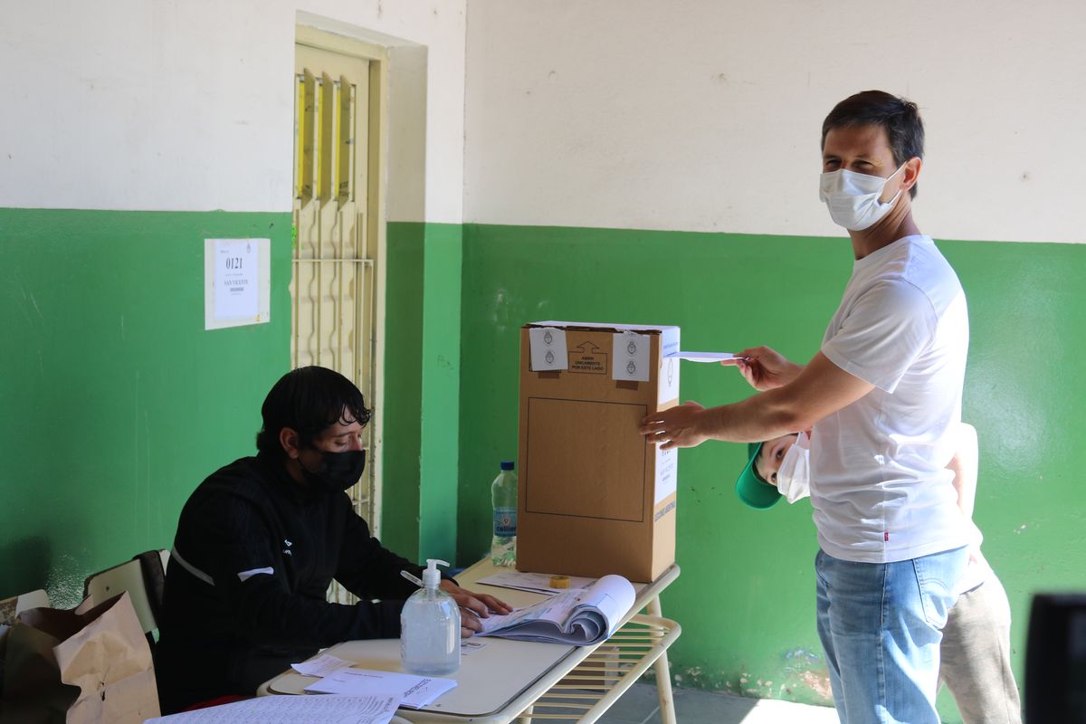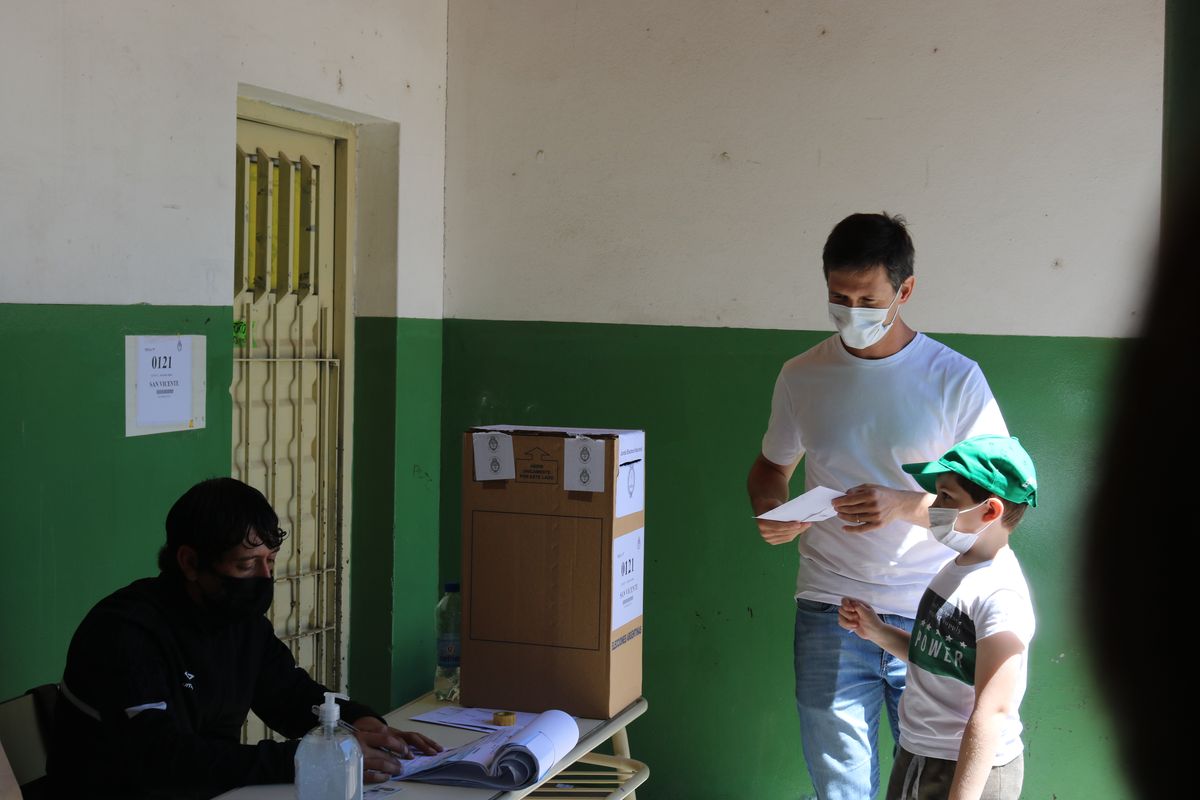 El intendente de San Vicente, Nicolás Mantegazza, votó este domingo por la mañana en la Escuela 15 del barrio La Esperanza de Alejandro Korn. Llegó al establecimiento acompañado por su esposa y su hijo y pudo sufragar luego de hacer una breve fila.