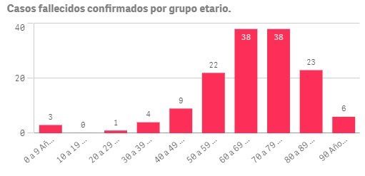 En este aspecto, las cifras brindadas por el ministerio de Salud de la provincia muestran que los dos rangos etarios con más víctimas son el de 60 a 69 años y el de 70 a 79 años, ambos con 38 fallecimientos.