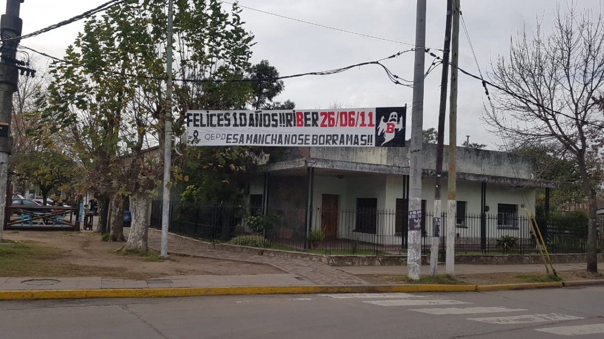 "Felices 10 años!! Riber 26/06/2011", tiene escrito uno de los pasacalles colgados en el distrito. Allí también se puede ver la imagen del fantasma con una B roja. Y termina con la repetida frase de los hinchas de Boca: "Esa mancha no se borra nunca más".