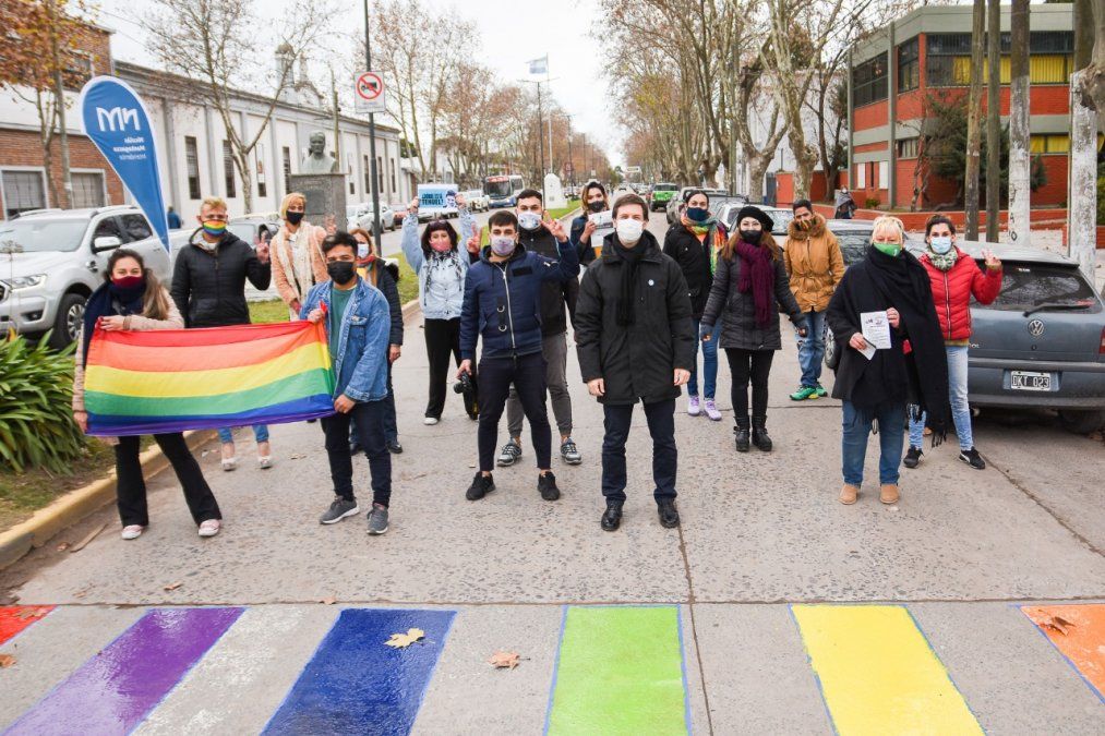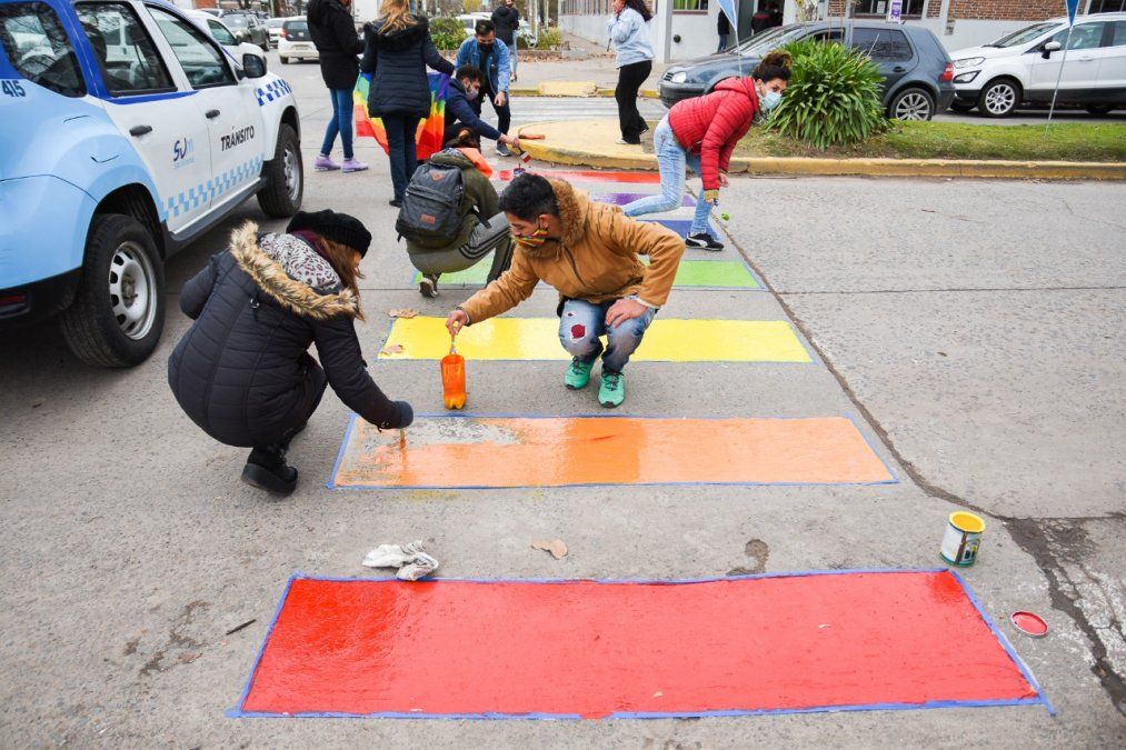 De esa manera, el cruce de la avenida 25 de Mayo a la altura de Biocca tiene ahora los colores del arcoíris. En diferentes ciudades del mundo hay ornamentos similares. De la actividad participó el intendente Nicolás Mantegazza.