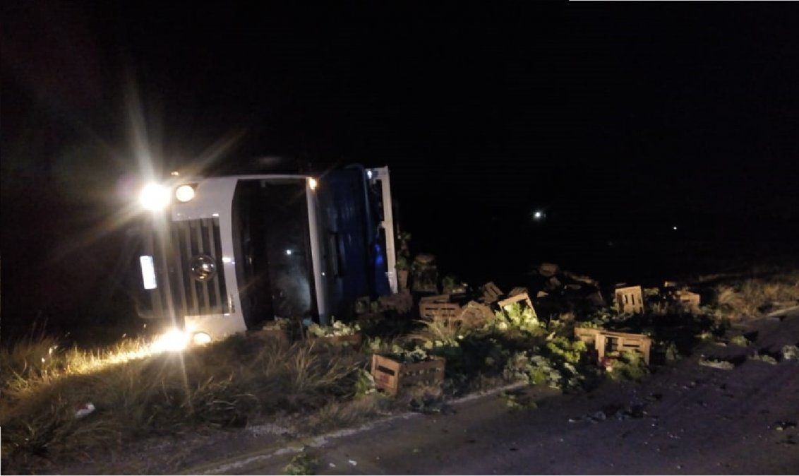 Un camión volcó sobre la ruta 6 este miércoles a la madrugada en San Vicente. Llevaba un cargamento de verdura que quedó desparramado al costado de la ruta. El conductor salió ileso del accidente.