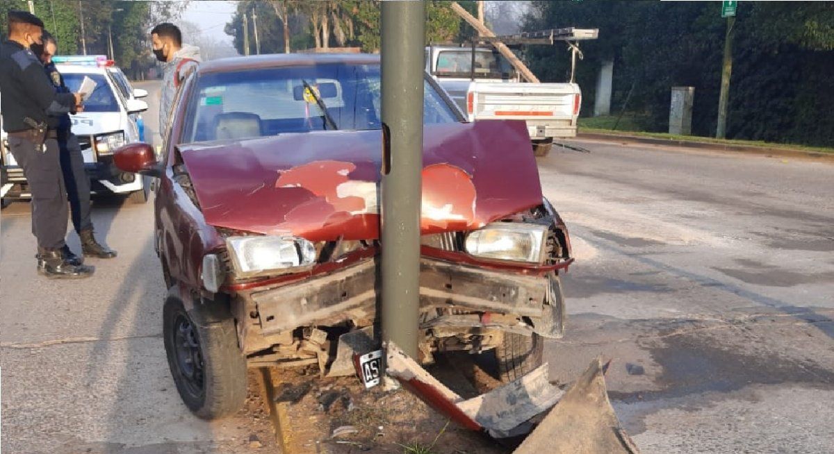 Fuerte choque en Alejandro Korn: un auto impactó de lleno contra un poste
