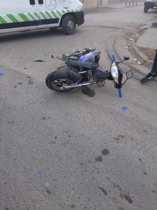 El auto que chocó es un Reanult 9 y la moto, una de baja cilindrada. La conductora era una mujer que se desempeña como docente, según informaron a El Diario Sur fuentes que trabajaron en el lugar.