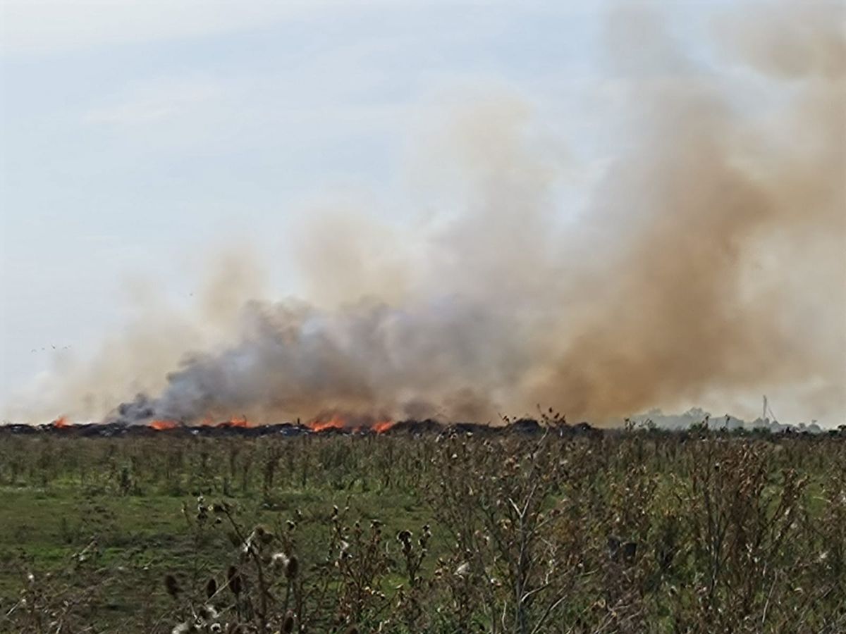El incendio afecta una zona de pastizales y residuos.