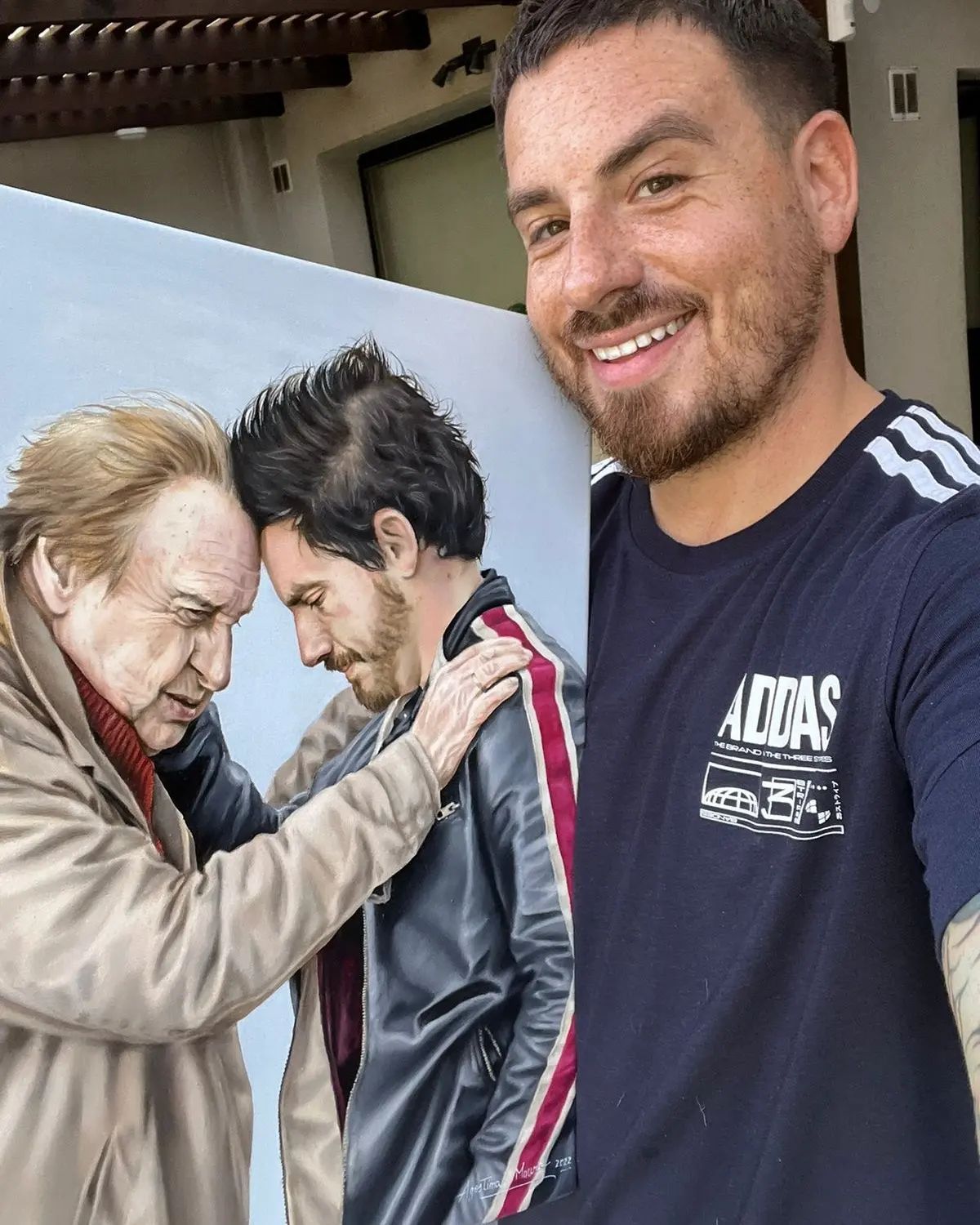 La artista sanvicentina Agostina Mauro realizó una obra por encargo para el actor Fede Bal. Se trata de un retrato de género hiperrealista de Bal junto a su padre, el autor y director Santiago Bal, fallecido en 2019.