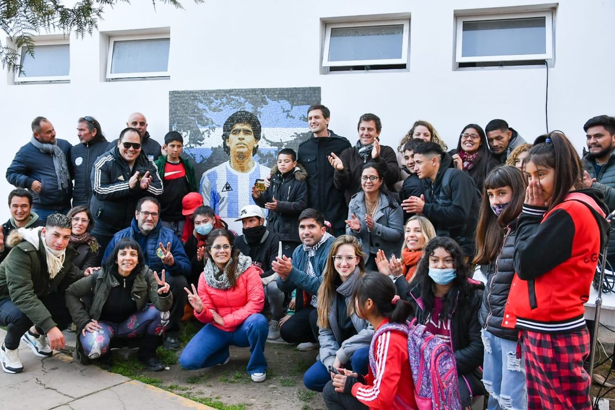El mural de Maradona con las Islas Malvinas de fondo ya puede verse en el Polideportivo Padre Mugica, de Alejandro Korn.