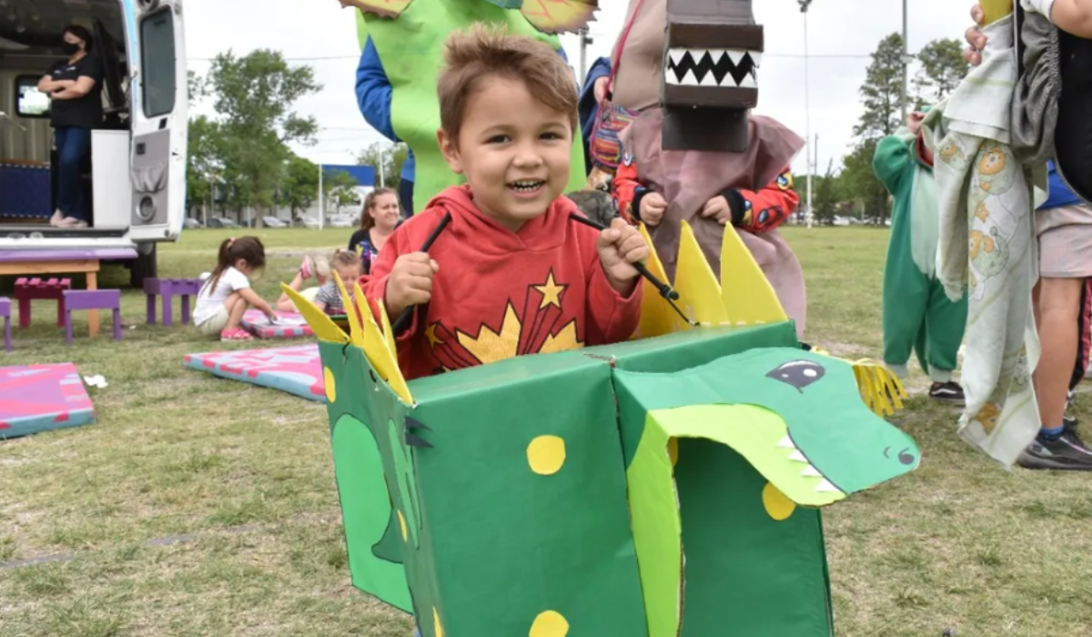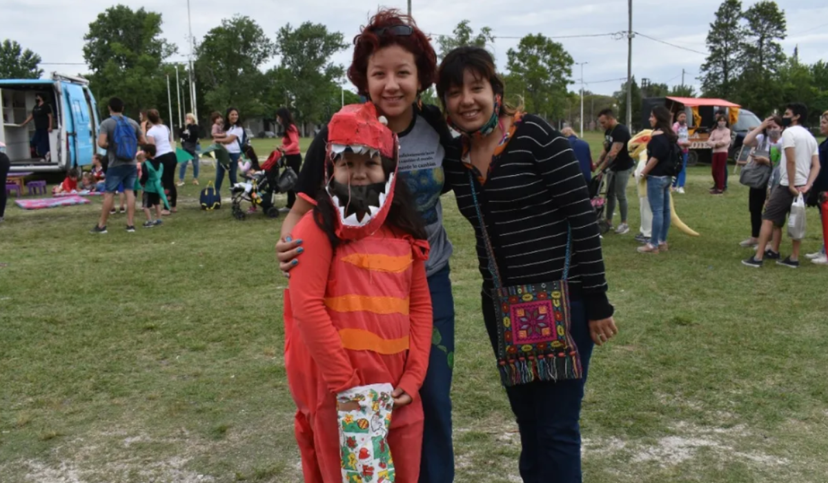 La primera edición de la carrera de dinos fue todo un éxito: participaron 94 chicos de todas las edades que llevaron disfraces originales, algunos hechos de papel, cartón o lona. La carrera fue de unos 10 metros ida y vuelta y todos recibieron un premio por participar.