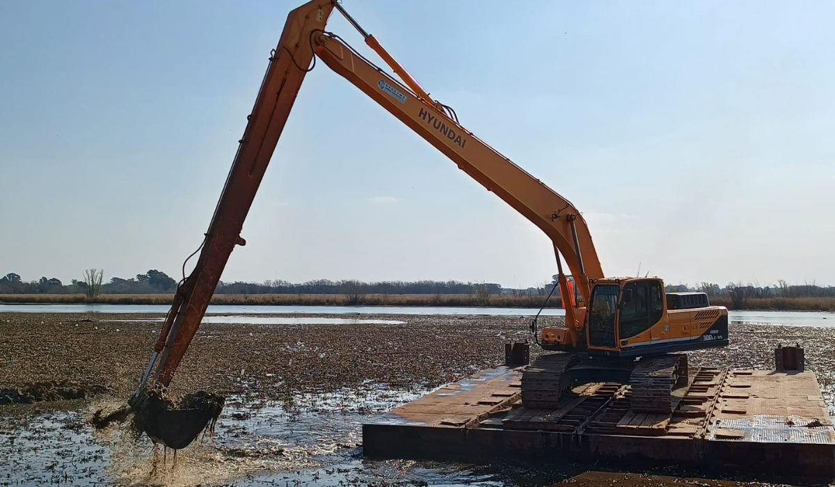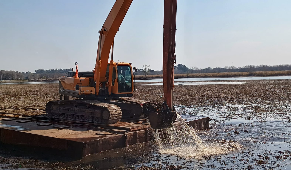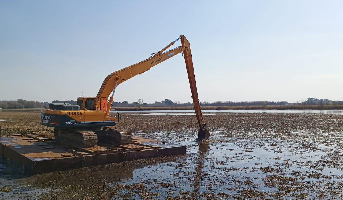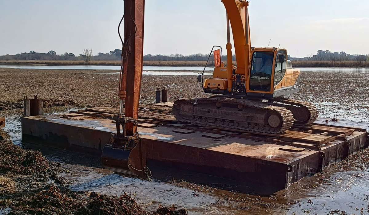 En este caso, lo que se coloca sobre el pontón es la retroexcavadora que retira mecánicamente las plantas. En esta fase inicial del trabajo, quita las plantas cercanas a la orilla y las deposita sobre la costanera. A partir de los próximos días se empezará a trabajar en la zona central de la laguna con un segundo pontón, donde se podrán ir vertiendo las plantas. El subsecretario de Recursos Hídricos también aclaró que "el oxígeno disuelto afecta a los peces, por lo que con la obra podemos recuperar la calidad del agua del espejo y tener otra posibilidad turística: la pesca deportiva".
