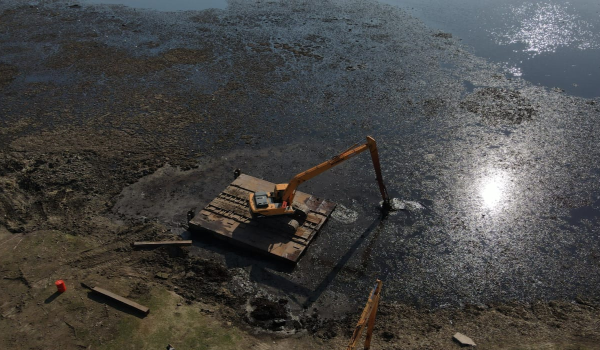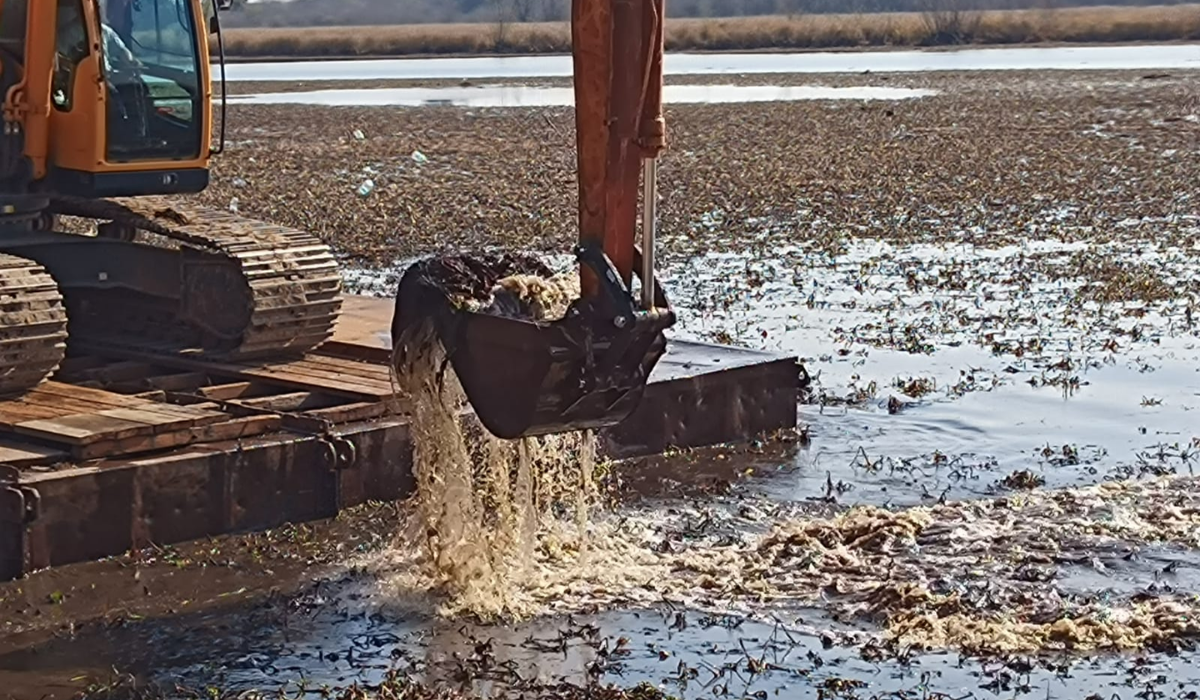 Comenzó la obra de limpieza de la laguna de San Vicente: así trabajan las máquinas