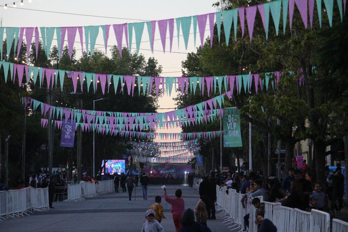La calle Biocca se vio transformada para la celebración por el Carnaval. De un lado de la calle se encuentran los stands de los emprendedores locales y, del otro lado, los food trucks. A la altura de la intersección con Nicandro Rodríguez, se confeccionó un pasillo de alrededor de 500 metros de largo para el desfile de las murgas y las comparsas.