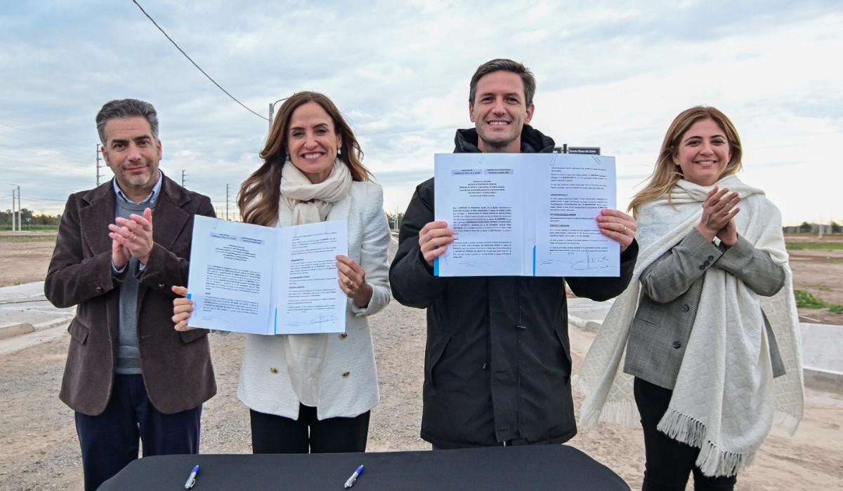 El intendente de San Vicente, Nicolás Mantegazza y la Ministra de Desarrollo Social de la Nación, Victoria Tolosa Paz, firmaron este martes el convenio que permitirá la construcción de un Espacio de Primera Infancia en el barrio Papa Francisco.