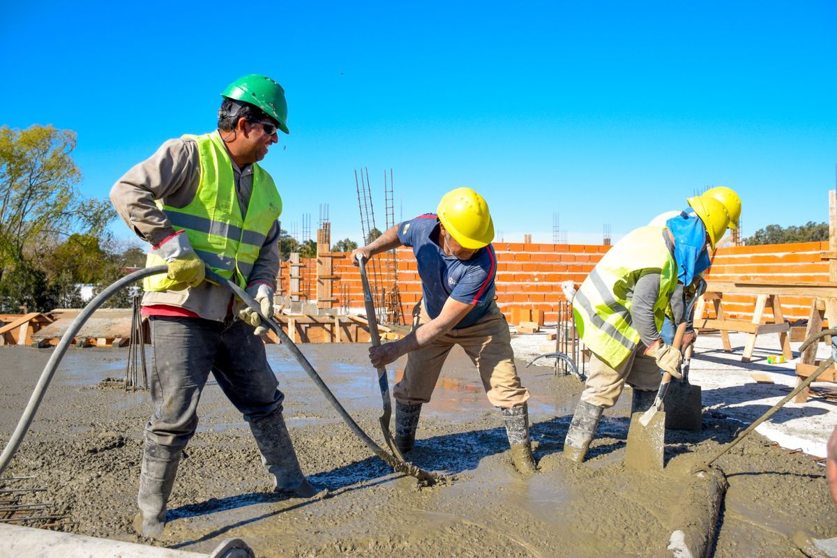 El Municipio de San Vicente continúa con los trabajos de la obra en construcción de la Escuela Secundaria N° 9 en la localidad de Alejandro Korn, donde se está llevando adelante un llenado de losa en el techo del nuevo establecimiento.