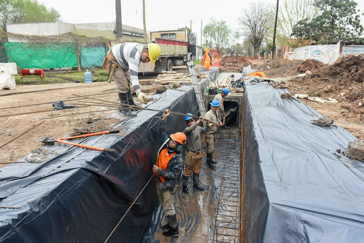 Avanzan los tareas de construcción de la obra hídrica Almirante Brown, que una vez puesta en funcionamiento logrará resolver el escurrimiento del agua en los barrios Santa Ana, Rosedal y Los Hornos de la localidad de Alejandro Korn.