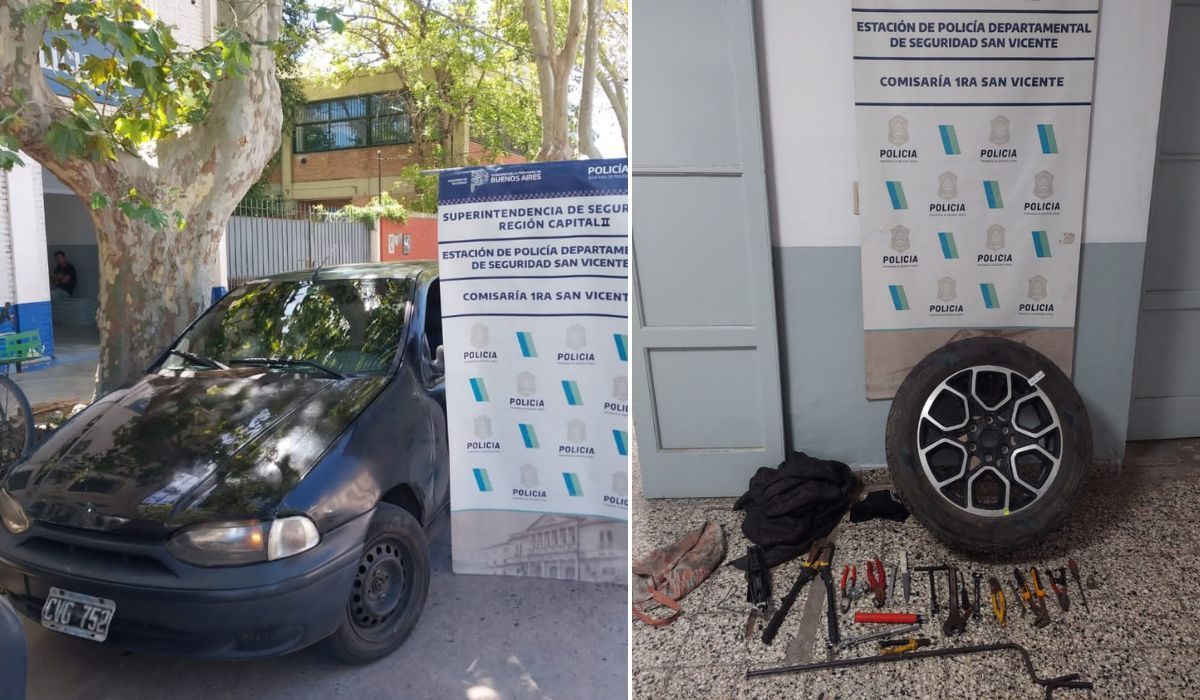 Dos personas fueron detenidas este martes por robarle las ruedas a un auto estacionado frente a la Comisaría 1° de San Vicente.