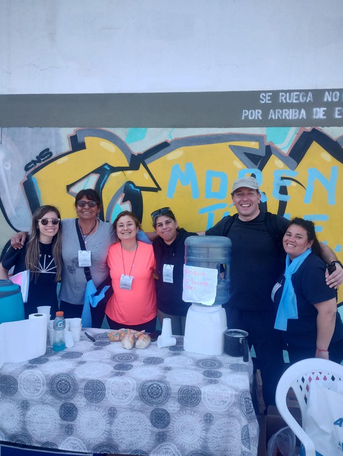 Entre los voluntarios que forman parte del equipo de apoyo está Daniel Rodríguez, quien desde hace años acompaña a los peregrinos. Rodríguez explicó que “se empieza a trabajar desde muy temprano, ya desde agosto con la inscripción, este año llevamos cinco micros y a mí me toca colaborar en General Rodríguez”. También, contó: “Yo caminé más de diez años y ahora me toca apoyar al peregrino para que llegue”.