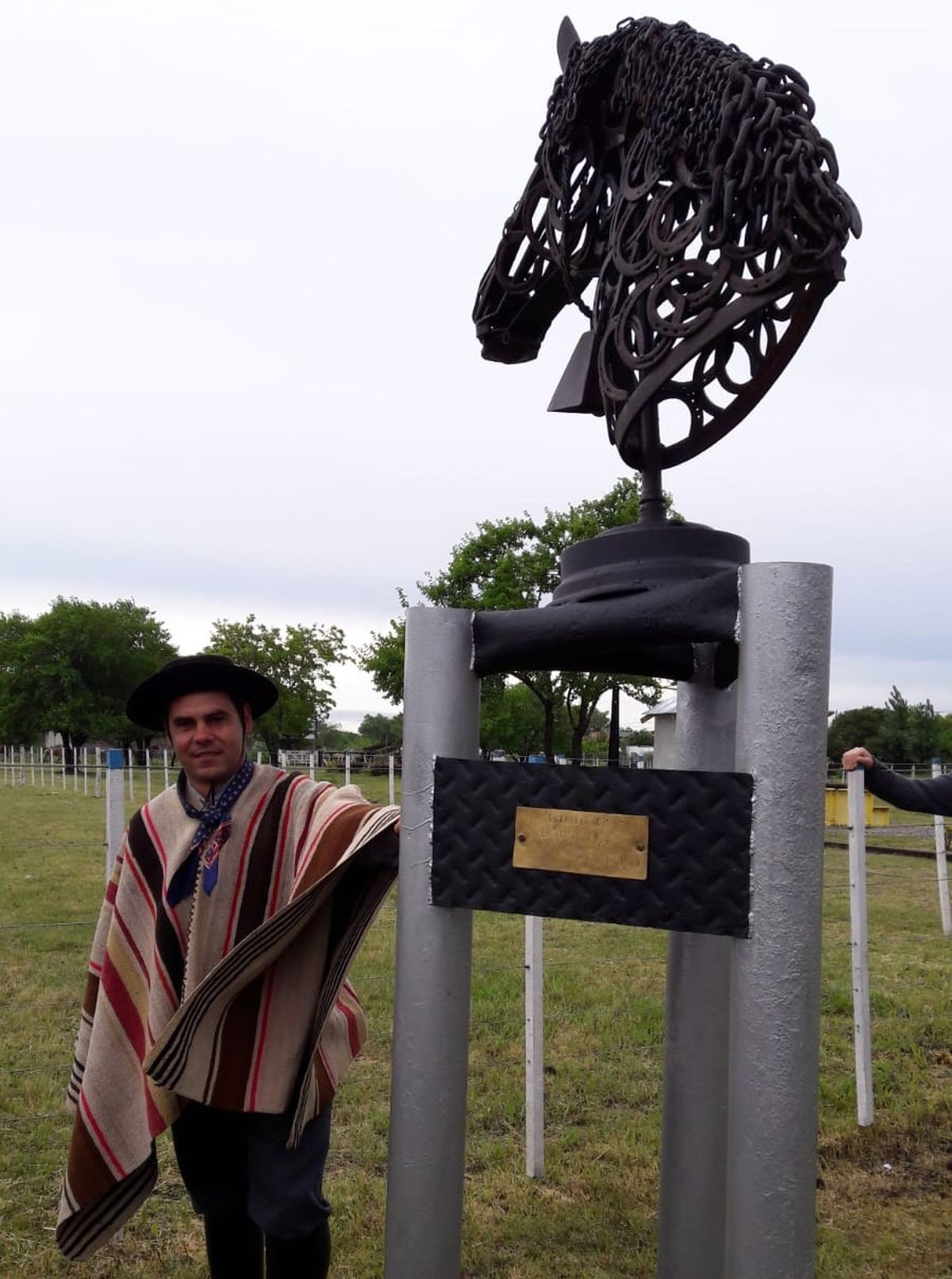 El artesano es el autor del monumento a la “Yegua Madrina”, ubicado frente a la Estación Cultural de San Vicente. La obra fue un regalo que realizó en la sexta edición de la Fiesta de la Mozzarella, cuando la Comisión de Festejos Tradicionales de San Vicente, lo invitó a formar parte.