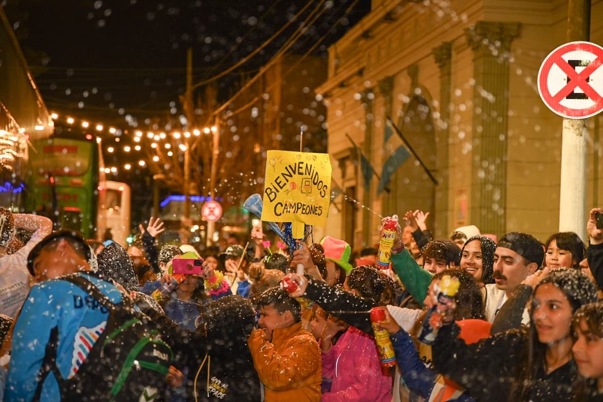 La delegación tuvo una emotiva recibida con cantos y espuma frente al edificio municipal el sábado por la noche de la cual participaron familiares, vecinos, el intendente Nicolás Mantegazza y la Jefa de Gabinete Daniela Lassalle.