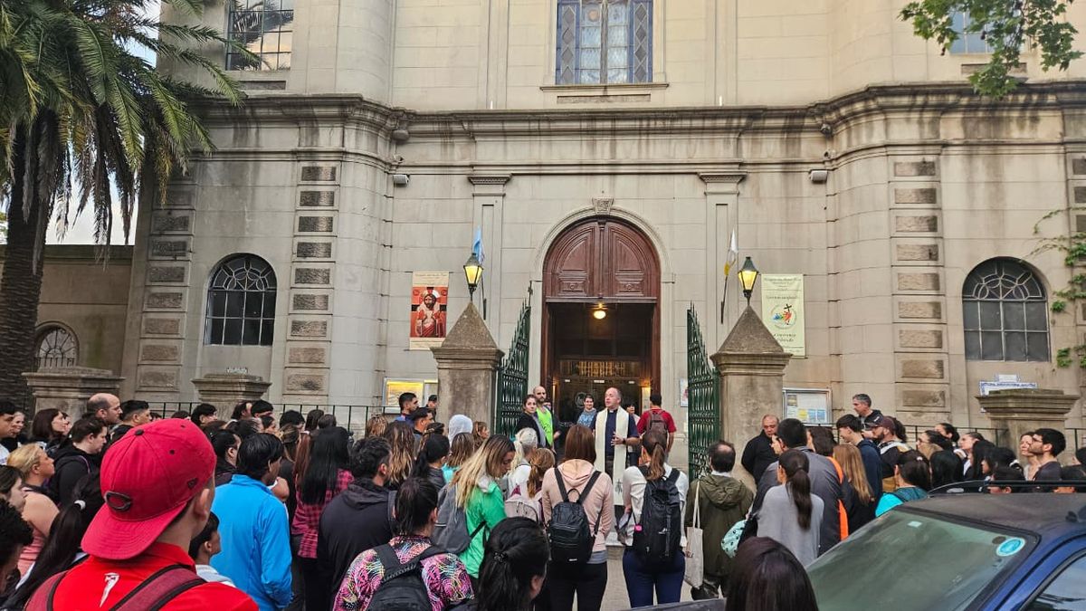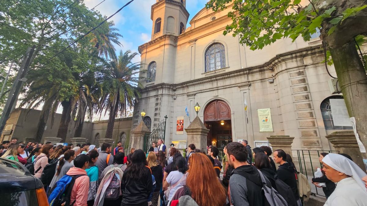 La jornada comenzó a las 6:30, cuando el padre Federico Piserchia dio la bendición frente a la parroquia y se tomó un momento para dirigirse a los fieles antes de que subieran a los micros con destino a Liniers, punto de inicio de la caminata.