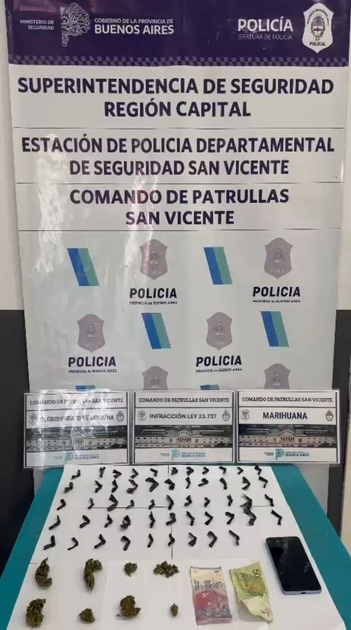 De acuerdo con las fuentes, la Fiscalía Descentralizada N°1 de San Vicente, a cargo de la doctora Karina Guyot, ordenó la formación de actuaciones por “tenencia de estupefacientes con fines de comercialización y resistencia a la autoridad”, y se secuestró la droga y demás elementos de interés para la causa.